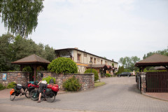 Das Touristenspektakel an diesem Ort ist unglaublich. Im Restaurant werden deutsche Schlager aus den 30ern gespielt. Die Speisekarte sieht aus wie eine Militärakte und zu allem Überfluss ist das ehemalige Gästehaus der SS ein Hotel geworden. Wer wissen möchte wie man in dem Hotel übernachtet dem sei die Lektüre des Buches „Land ohne Eile – Ein Sommer in Masuren“ von Tobias Lehmkuhl empfohlen. Die Bunkeranlage ist schon beeindruckend aber doch sehr befremdend. Einige Tage später erfahren wir, dass halb Masuren mit solchen Anlagen übersäht ist. Teilweise sogar in begehbarem Zustand, wie bei Mamerki nördlich von Radzieje. Ein merkwürdiges Gefühl ist es, am Ort des gescheiterten Attentats vom 20. Juli zu stehen. Durch das Besichtigen und noch mehr durch das viele Reden mit Thomas ist es 16:30 Uhr als wir die Anlage verlassen – reichlich spät um noch bis zum geplanten Zeltplatz in Sztynort zu kommen. Doch alle anderen Möglichkeiten, Campingplatz direkt an der Wolfsschanze und einer 3 km weiter östlich scheiden wegen schlechten Karmas und übertriebenem Militarismus aus. So heißt es einen Gewaltritt bis Sztynort zu machen. Da wir einen gemeinsamen Weg haben fahren wir mit Thomas zusammen weiter. Das fiese Kopfsteinpflaster zwischen Radzieje und Kamionek Wielki gibt uns den Rest. An die im Radreiseführer empfohlene Umfahrung über Łabapa haben wir nicht mehr gedacht.